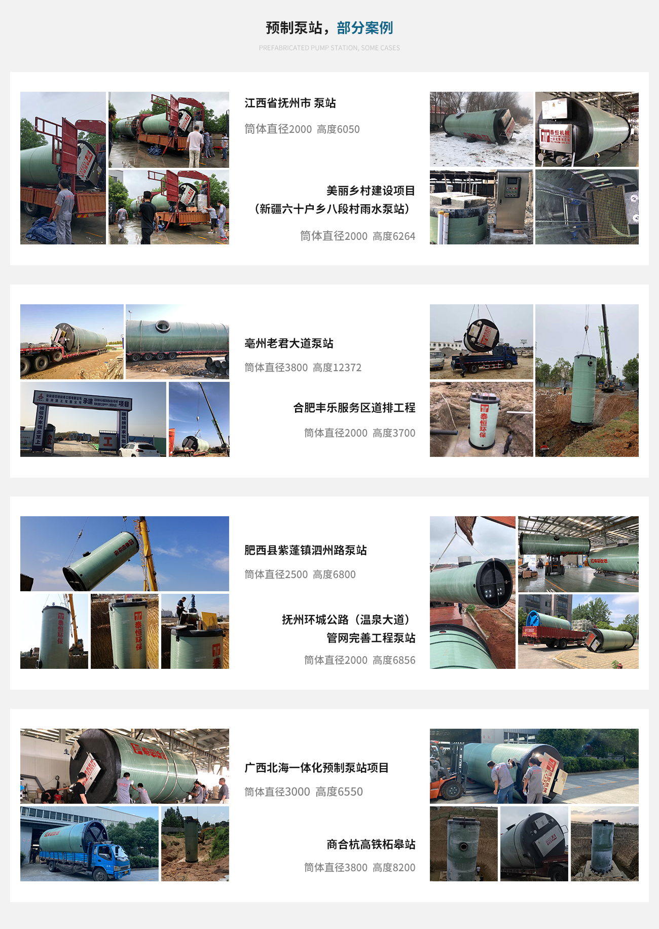 預制泵站筒體結構由纖維纏繞玻璃鋼(GRP)制成,電腦控制連續纏繞成型,保持厚度均勻并達到設計要求,質量穩定優良。